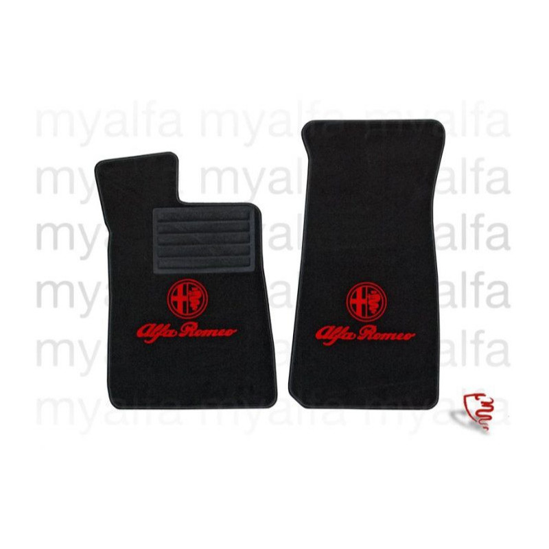 FOOT MAT SET ALFA ROMEO SPIDER 1966-69 BLACK VELOURS WITH RED BADGE