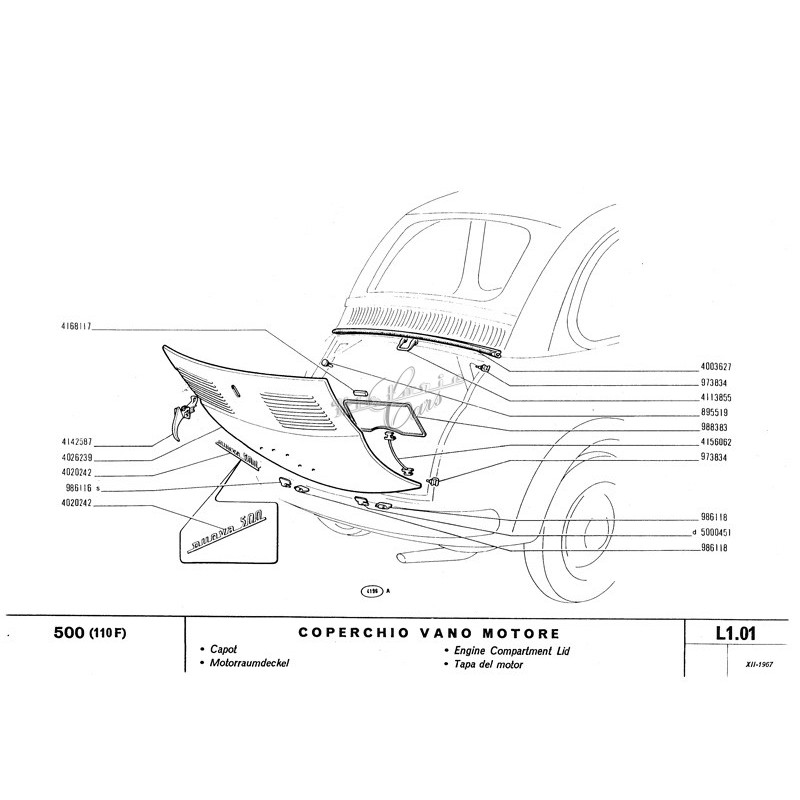 In stockfront ornament Fiat 500 (N/D) F