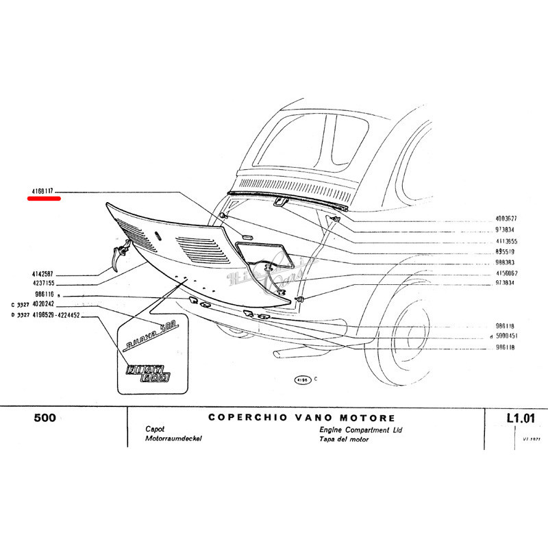 Out of stockfront hood rubber pad Fiat 500 - Fiat 600