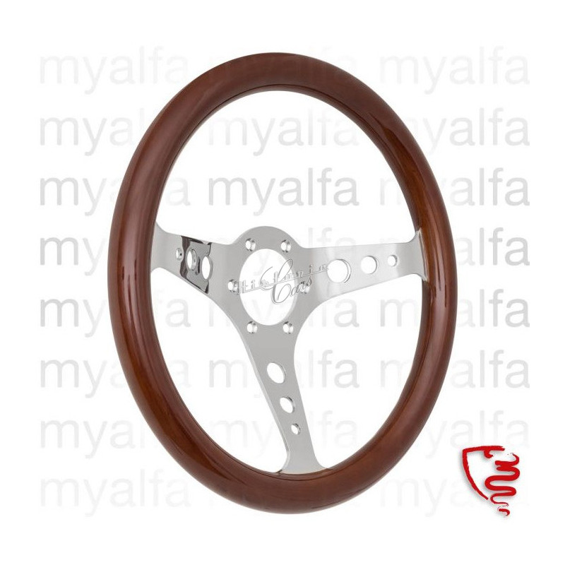 STEERING WHEEL 350MM MAHOGANY BROWN, CHROMED SPOKES WITH HOLES